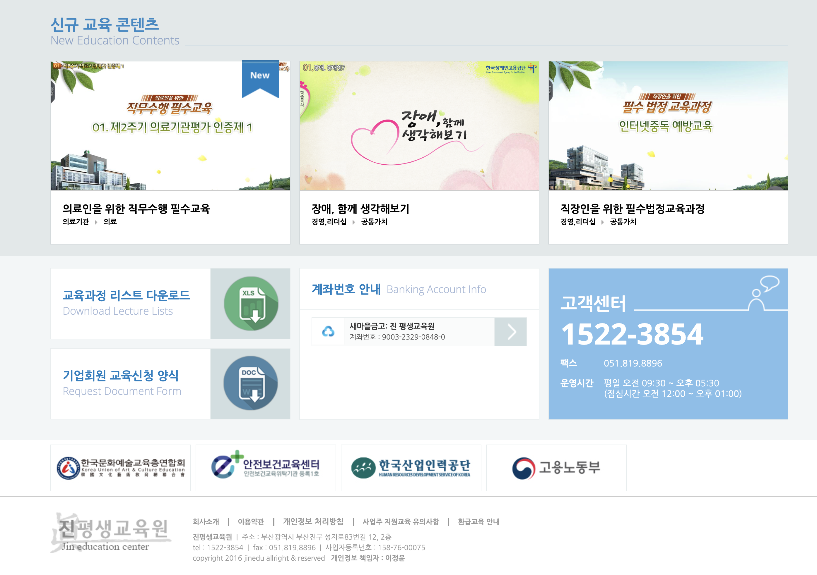 진평생교육원 고객센터는 1522 3854번 입니다.
